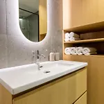 Die Tobiase Residences - Luxury Apartments verfügt über ein Badezimmer mit einem Haartrockner, einem Wäschetrockner und Handtüchern. Außerdem gibt es hier eine getrennte Toilette und eine Dusche.